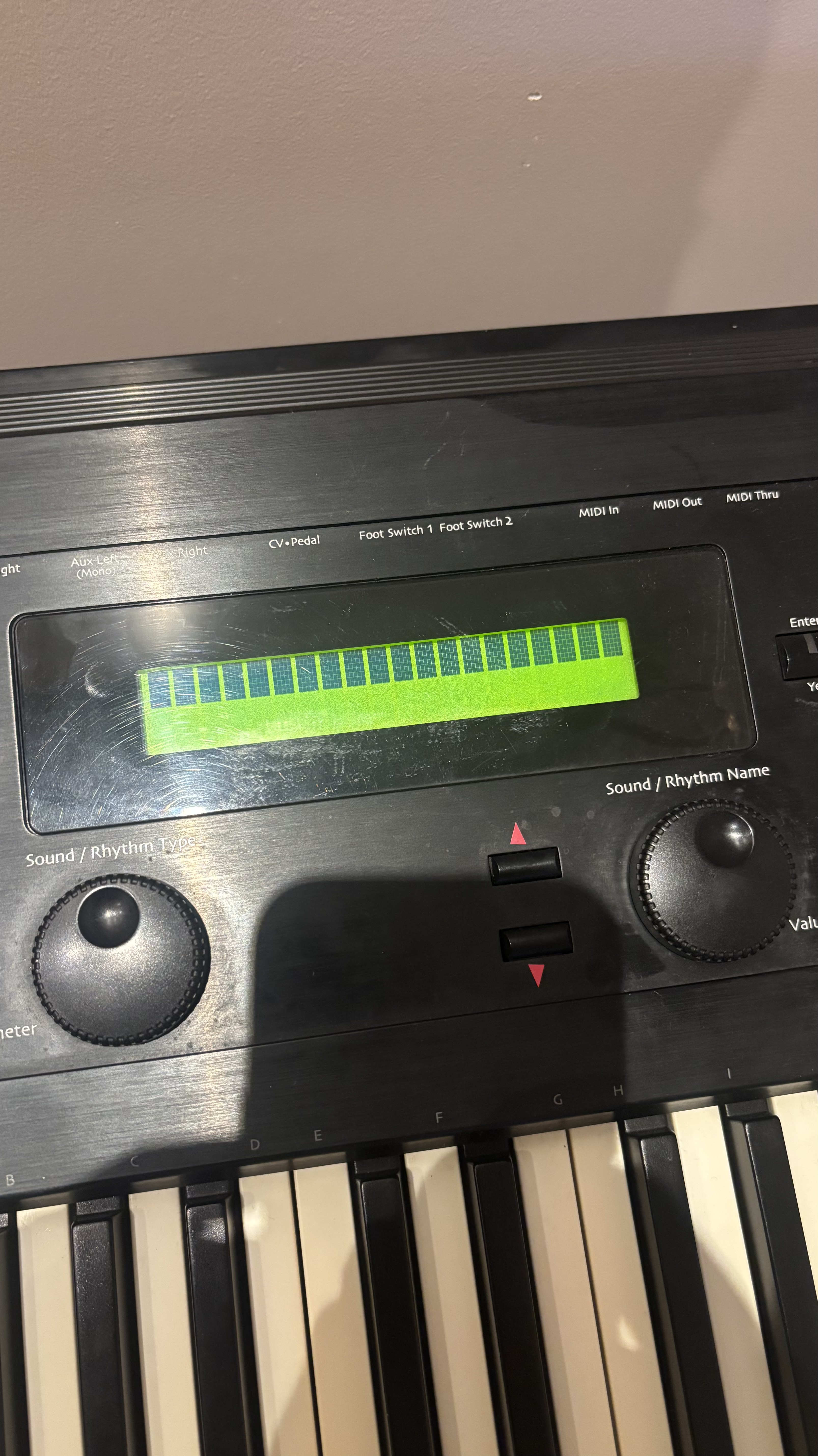 I turned it off and on again, but when I turn it on it gets stuck and the screen only displays black squares as shown in the attached image.