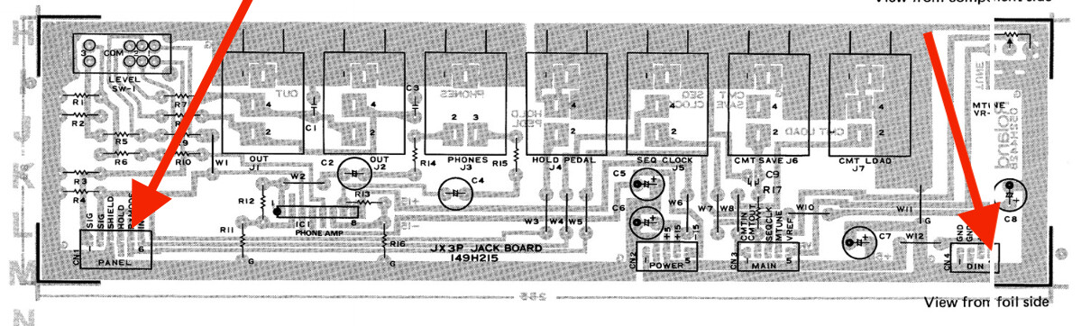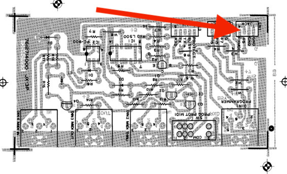 On the jack board: Pin 4 of CN4 and Pin5 of CN1