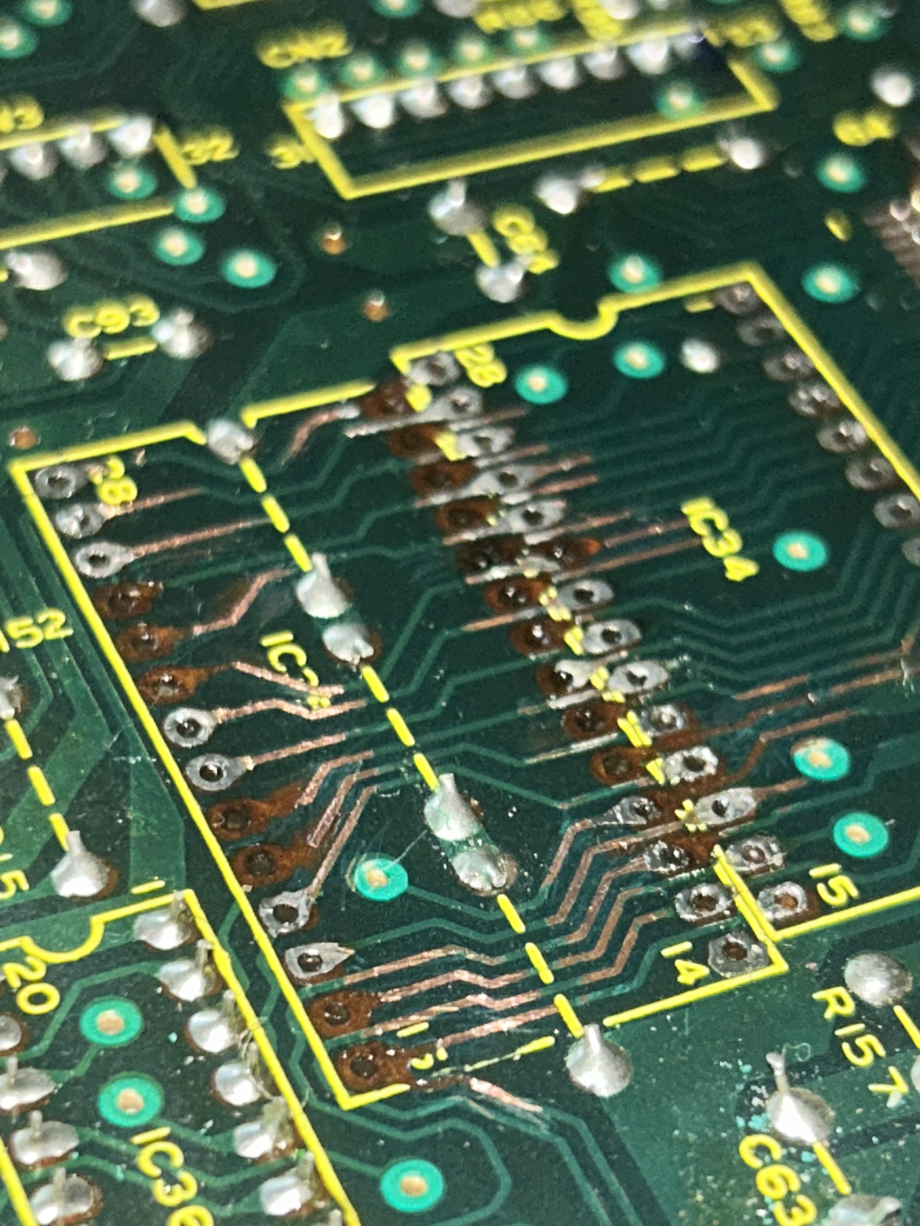 So here is what I’ve done. From my pictures, it might seems like some lines might be slightly touching each other especially on the right side of the board. My multimeter did pass the check every time I would check for continuity, and also checking if pins that weren’t supposed to be in contact, actually were. None of them showed me bridging between pins, but when i plugged the 707 back on, all of my drum kits were distorted. I am suspecting some bridging might actually be happening and that my multimeter, isn’t sensitive enough to detect it. what do you think ?