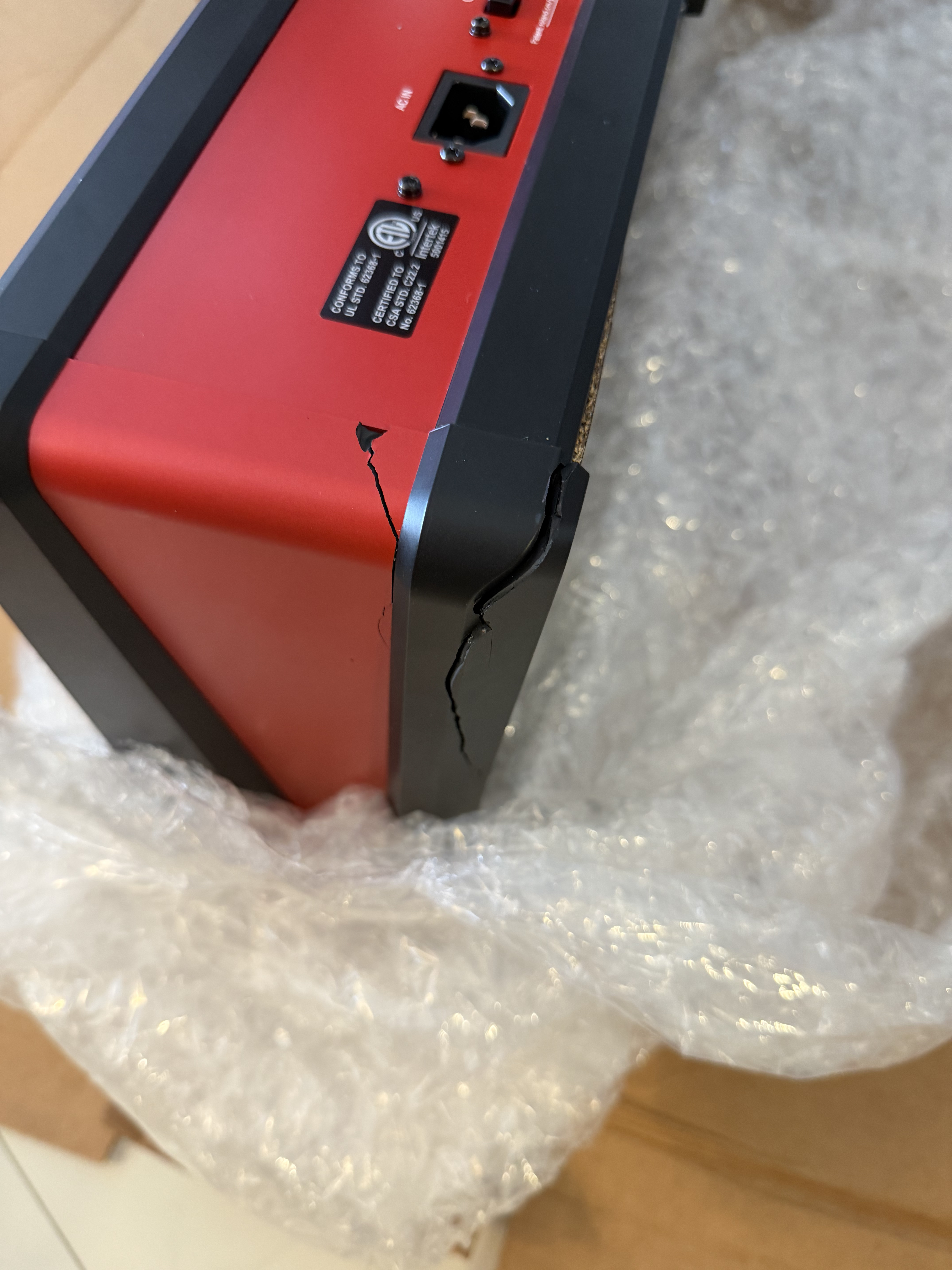Hello, I have recently purchased a used Fantom 8 EX. It was shipped via courier. Upon opening the box, the keyboard showed multiple cracks in the right end cap. It was clearly caused by poor packaging and shipping. Other than a cosmetic damage, the keyboard appears to properly work.