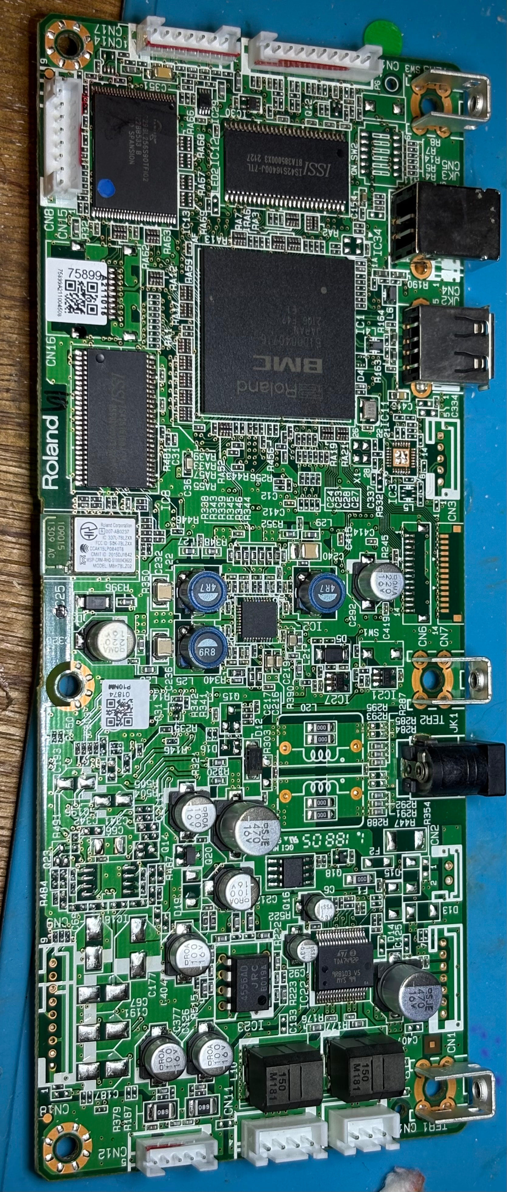 The caps are polymer and not bulging. Can’t see anything obviously wrong with it. Can’t see a fuse either, but current draw on xpwr-sw going low suggests power is getting to the voltage regulator.