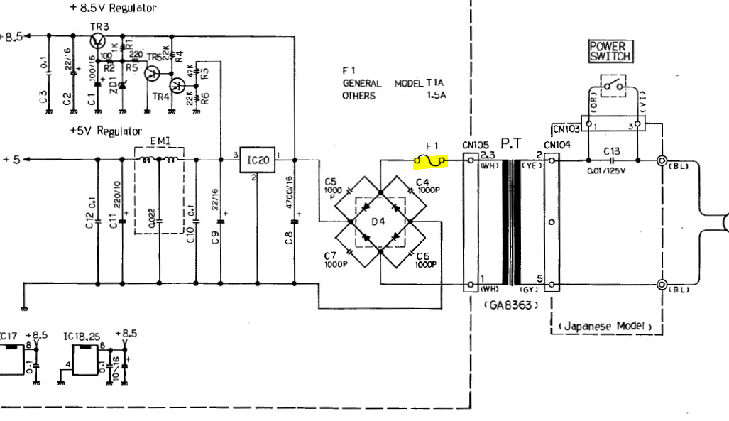 Get the schematics and check the power supply first. Hopefully it might be that.